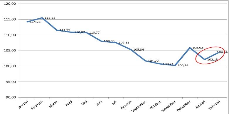Meskipun perdagangan hariannya naik turun, tampak jelas adanya tren penguatan yang signifikan sejak akhir Januari hingga saat ini.